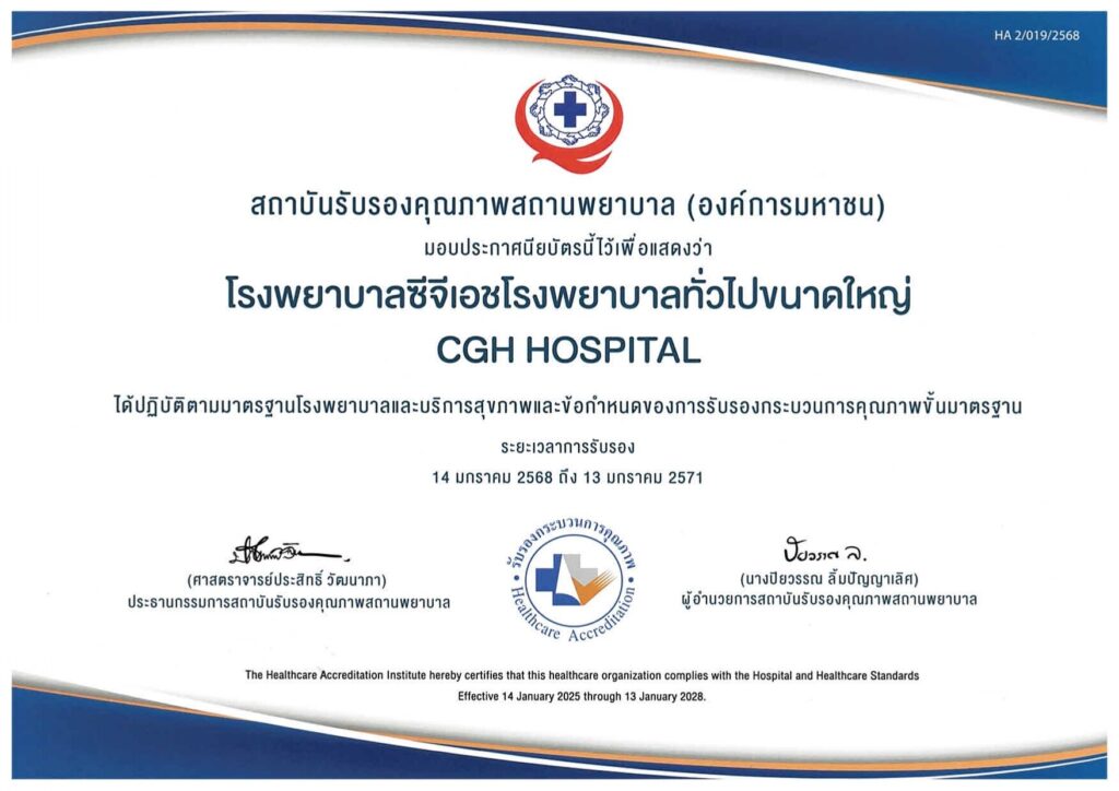 โรงพยาบาลซีจีเอช พหลโยธิน รับมอบประกาศนียบัตรการประชุมวิชาการระดับประเทศ Ha National Forum ครั้งที่ 25
